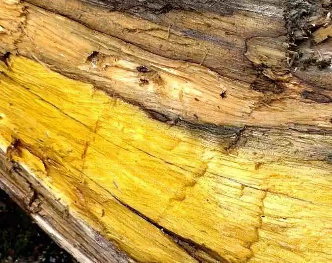 于是,有人用刀在一根立柱上刮下的一层薄片,用强光电筒照射,木片及柱子均呈现闪闪金光,凑近细闻,能闻到一种楠木的香气,木材带金色丝状物,正是金丝楠木的的特征!